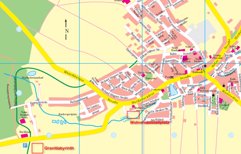 Standort ist der ehemalige Werkplatz eines Steinmetzbetriebs, an der Straße und am Radwanderweg, die Kirchenlamitz und Weißenstadt miteinander verbinden.